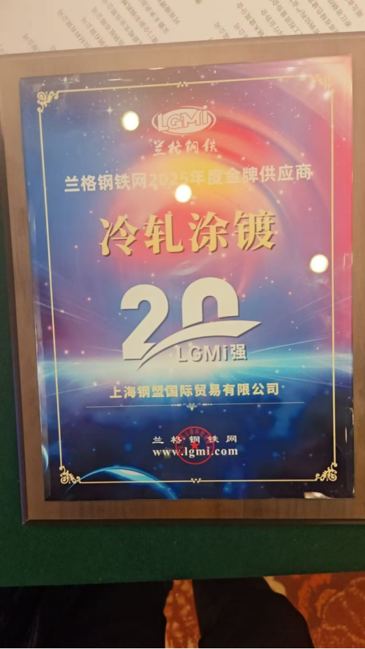 在刚刚结束的第21届中国钢铁产业链峰会暨兰格钢铁网成立30周年启动大会上,上海钢盟国际贸易有限公司获得“兰格钢铁网2025年度金牌供应商冷轧涂镀二十强”。